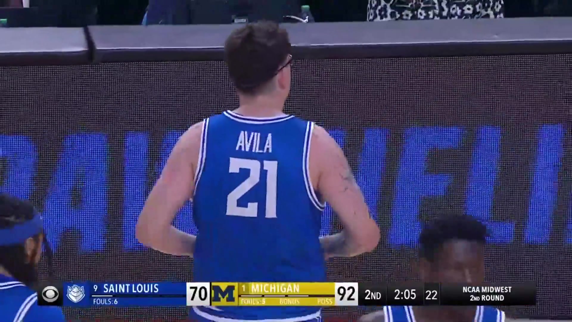 圣路易斯大学大四球星罗比·阿维拉本场面对密歇根2米21的中锋阿代·马拉表现不佳,13投仅3中,三分10中3,得到9分1篮板5助攻。本场过后阿维拉结束了自己的大学生涯,赛后接受采访时他表示,自己享受大学生涯的每一步,很不舍的就这样结束。
